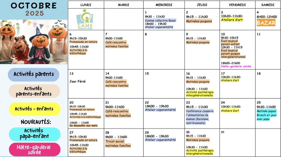 Le CAME est, depuis 1984, un OBNL autonome de répit pour les familles avec des enfants d’âge préscolaire. Nous offrons des services et des activités pour mieux vivre votre parentalité en favorisant les échanges avec d’autres parents et créer un réseau social. Pour une place subventionnée, veuillez communiquer avec nous.
